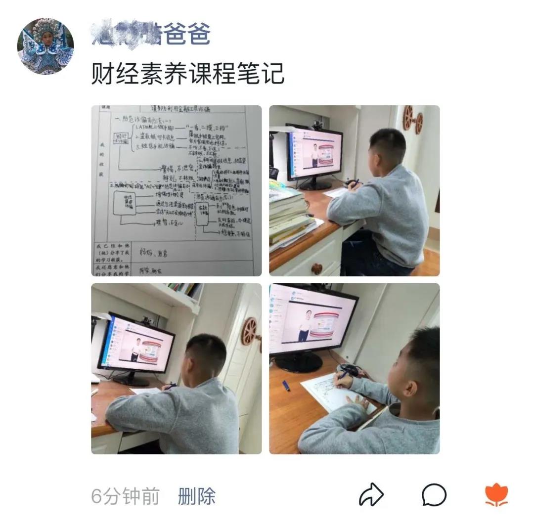 天河石牌小学四五六年级学生在家长的陪同下学习了防范金融诈骗课,在线上学习过程中,学生们纷纷写下听课笔记和收获体会,课后主动与身边的小伙伴分享学到的知识,有效提高了疫情防控期间师生及所在家庭的防范诈骗意识。